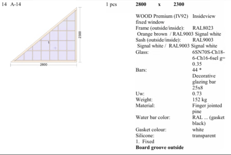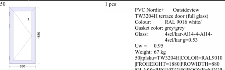 Kolmekordne klaaspakett termovaheliistuga. Sees ja väljas väikese päikesekaitsega klaas.